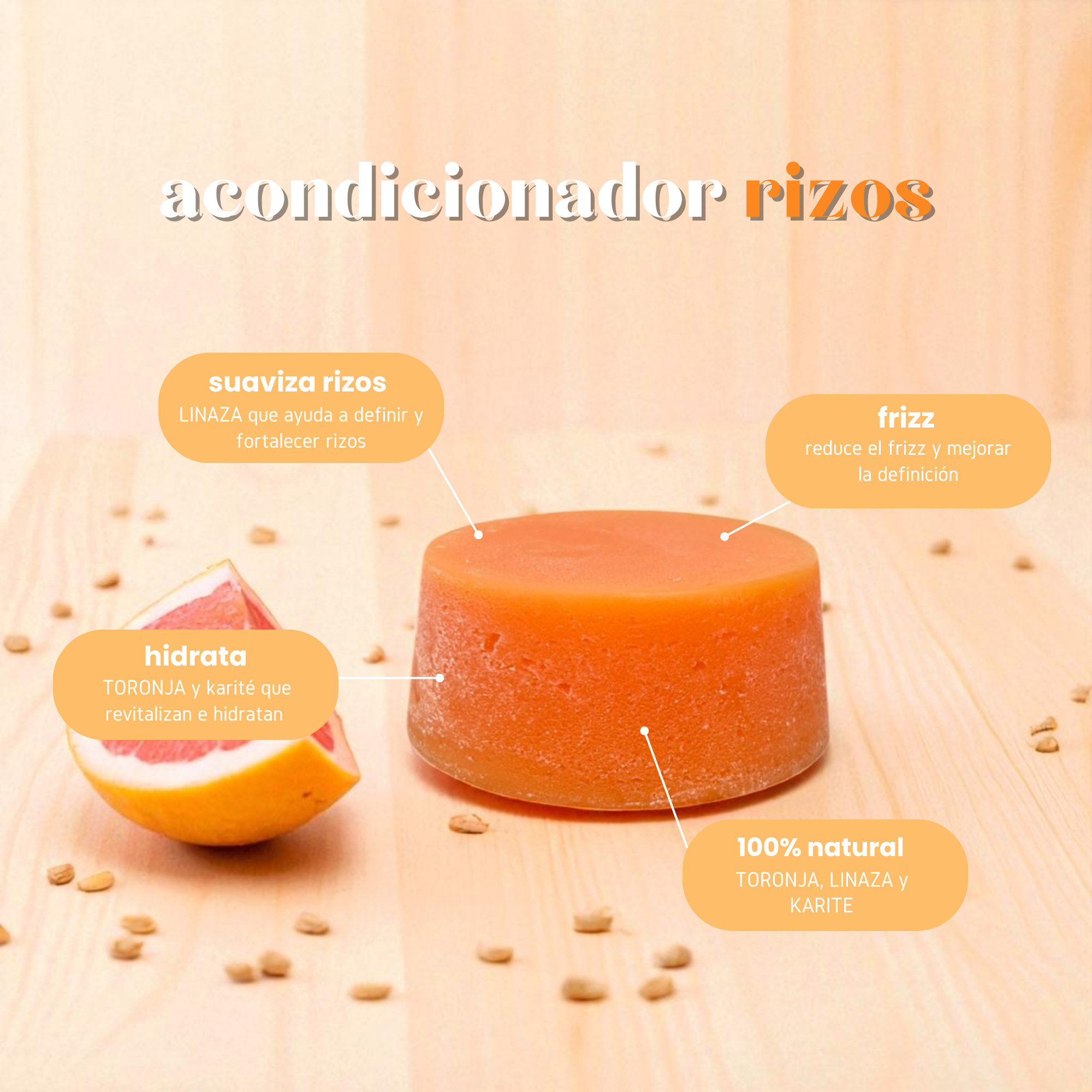 Kit incluye: Shampoo Sólido Rizos 100 gms + Acondicionador Sólido Rizos 90 gms
