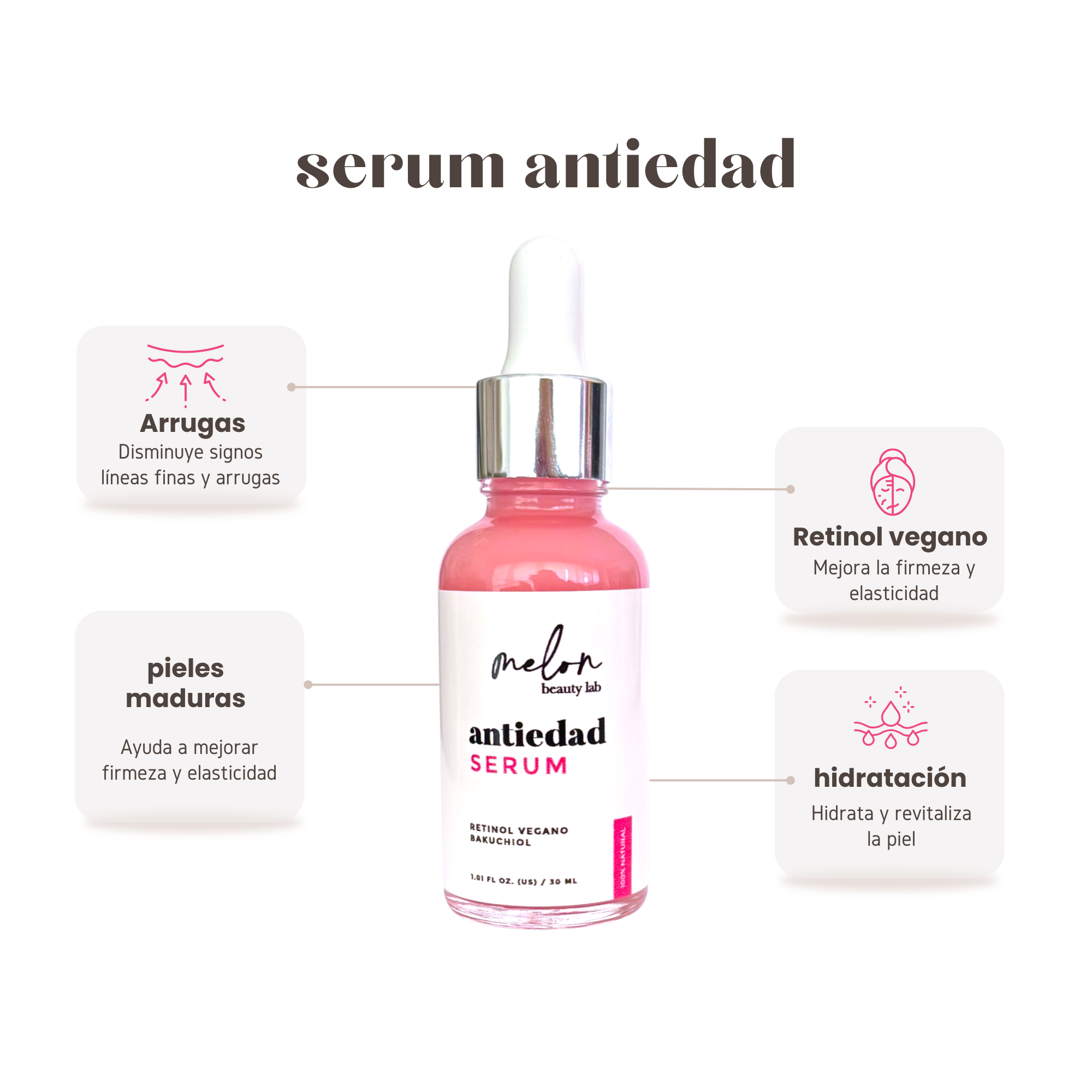 Suero con BAKUCHIOL, HIBISCUS y GOJI que ayuda a disminuir arrugas y mejorar la hidratación.