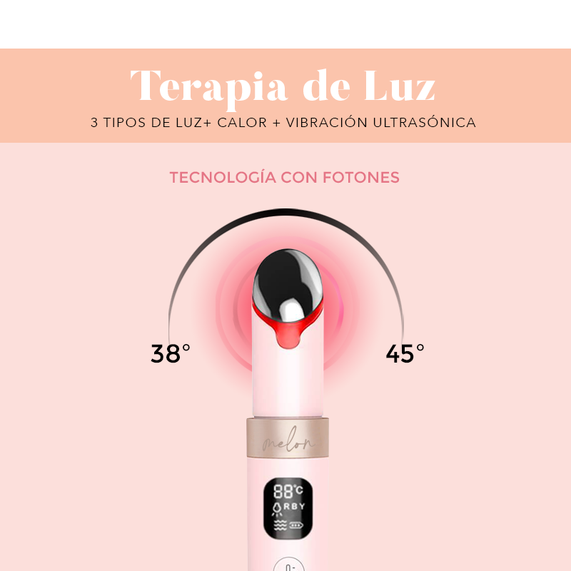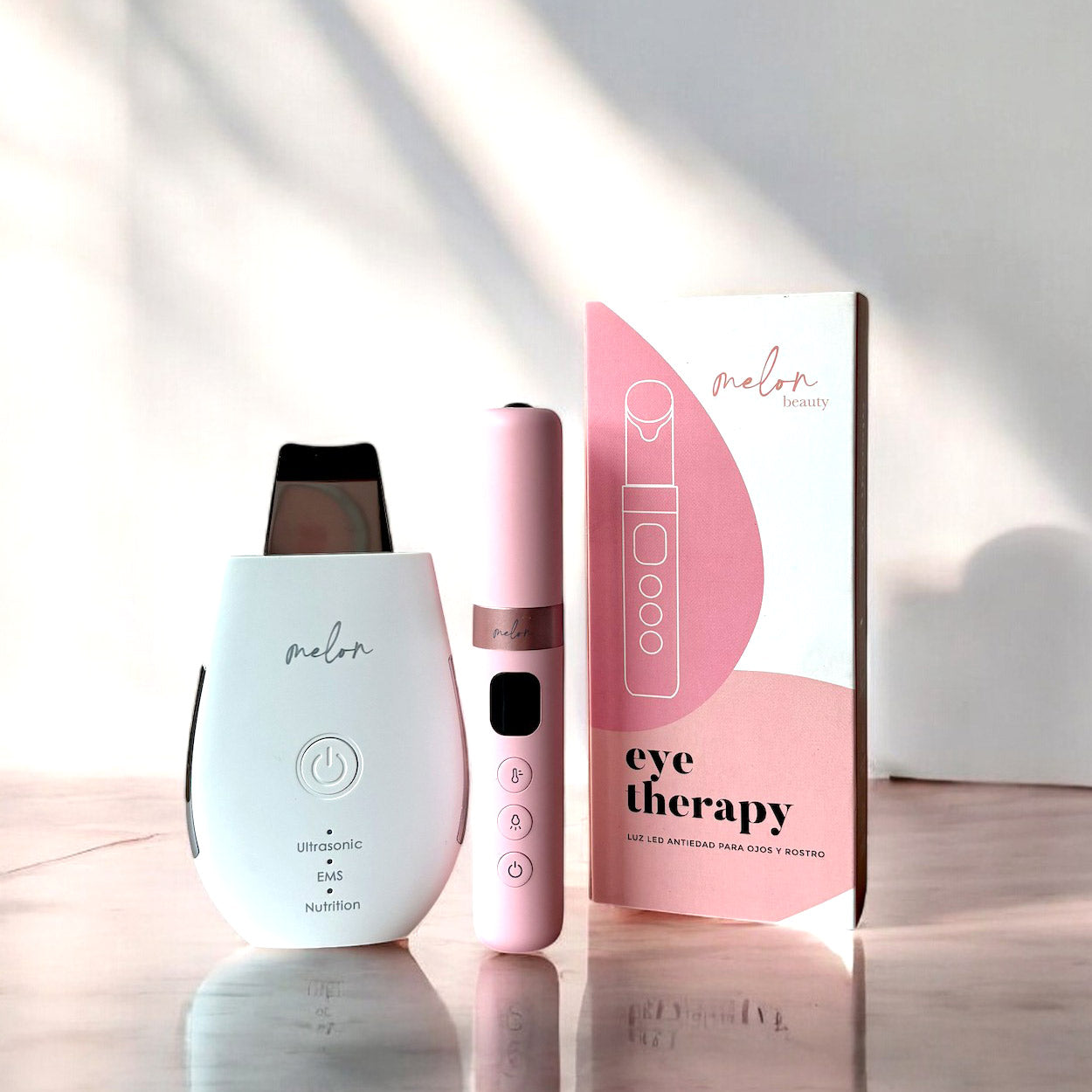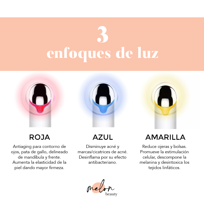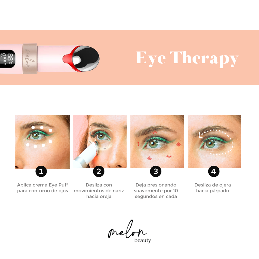 Eye Therapy: Un dispositivo de terapia de Luz con fotones de calor para reducir patas de gallo, bolsas debajo de los ojos, disminuir marcas de acné  y potenciar la absorción de los productos.