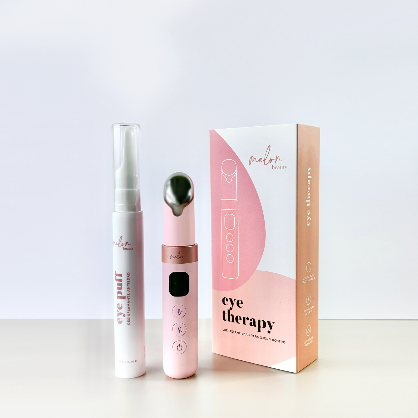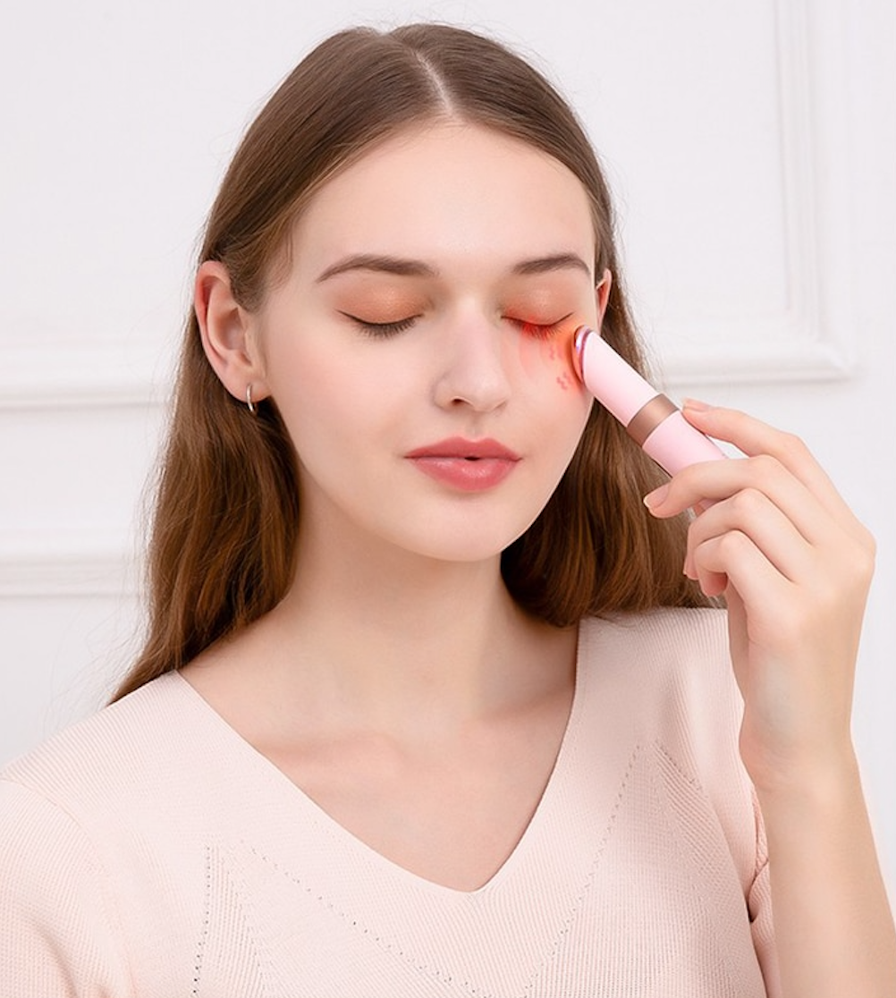 - Vibración / masaje: Estimula la circulación sanguínea alrededor de los ojos para disminuir bolsas de cansancio, patas de gallo y ojeras.